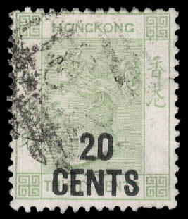 Hong Kong, 1891, Queen Victoria, 20¢ on 30¢ gray green (Scott 52), beau. Scott $140. SG 45a; £150 ($200). Yang 42a.