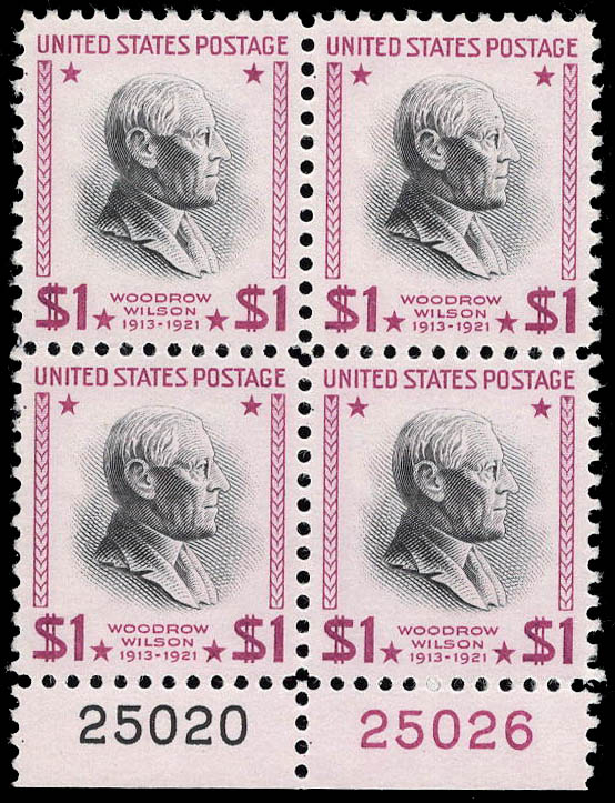 1954, Presidential Issue, $1 Wilson, bright magenta & black (Scott 832g), très beau à superbe. Scott $400.