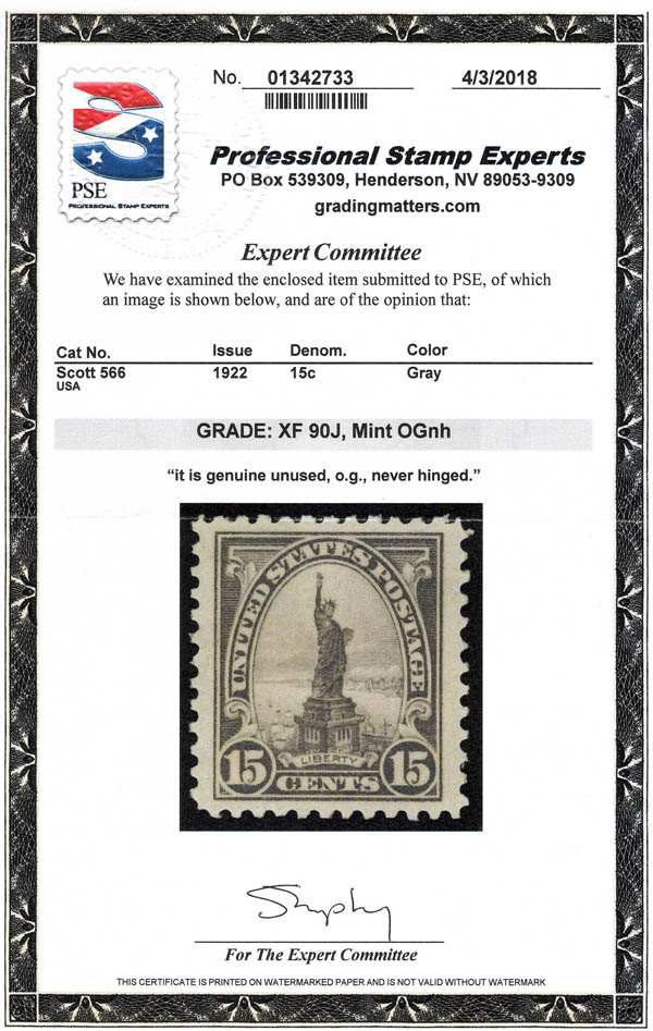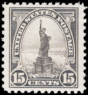 1922, 15¢ Statue of Liberty (Scott 566), XF 90 J. Scott $35. SMQ $140.