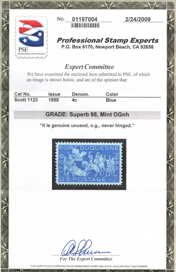 1958, 4¢ Fort Duquesne (Scott 1123), SUP 98. SMQ $85.