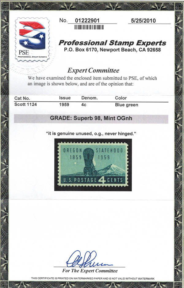 1959, 4¢ Oregon Statehood (Scott 1124), SUP 98. SMQ $85.